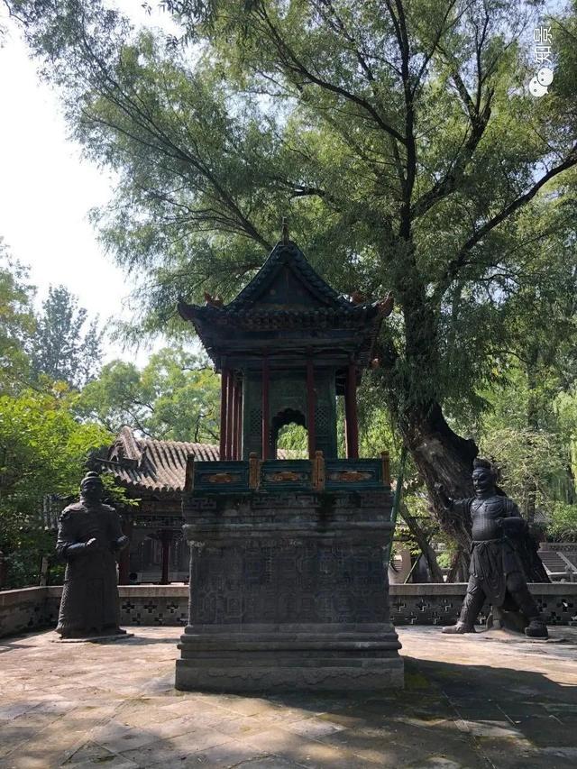 跨过智伯渠上的会仙桥,就是金人台, 也称“莲花台”。台四隅各立一尊高约2米的铁人,因铁为五金之属,所以称金人台。
