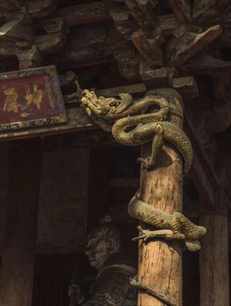 廊柱上的八条木雕盘龙,是中国现存最早的盘龙雕柱,雕于宋元佑二年(1087年)。