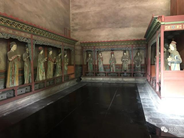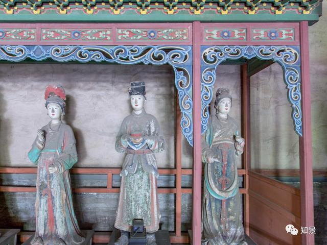 圣心殿殿内有主像一尊,四周环立随从42尊,此中宦官5尊,着男服的女官4尊,侍女33尊。