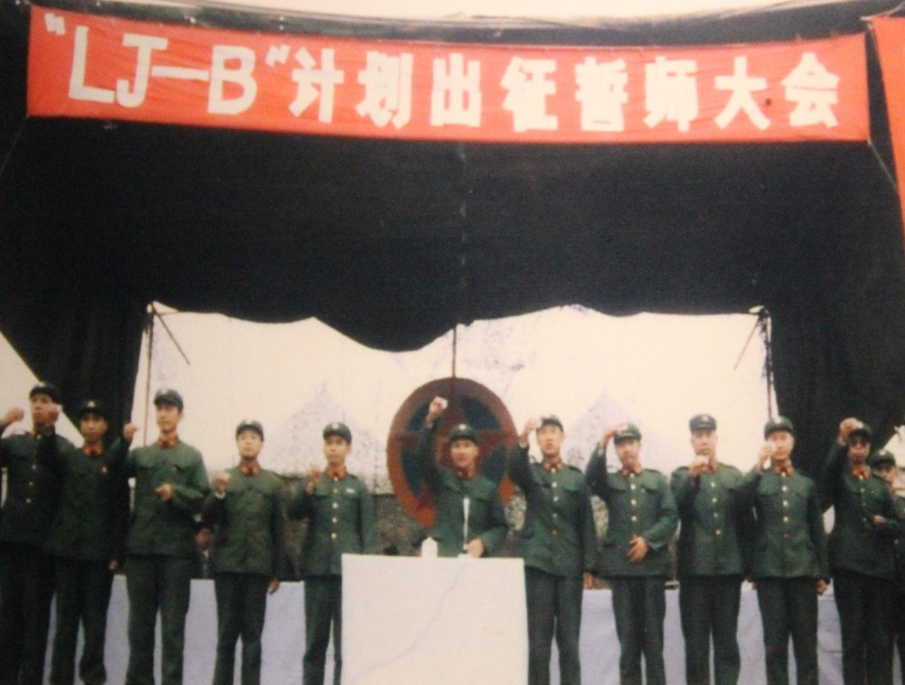 甘荣坤海(右二)在出征誓师大会上与同袍留影