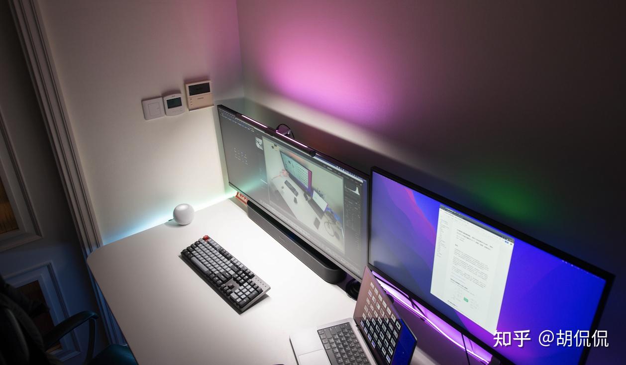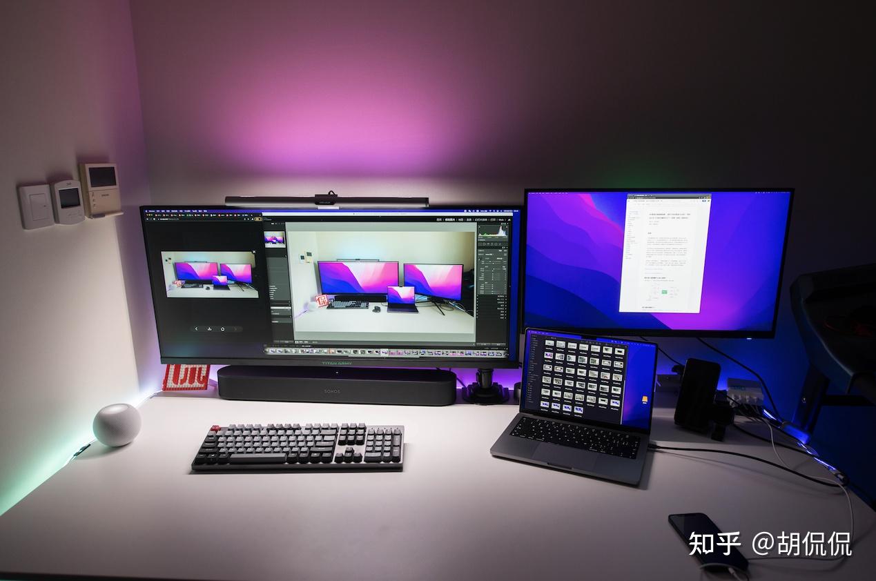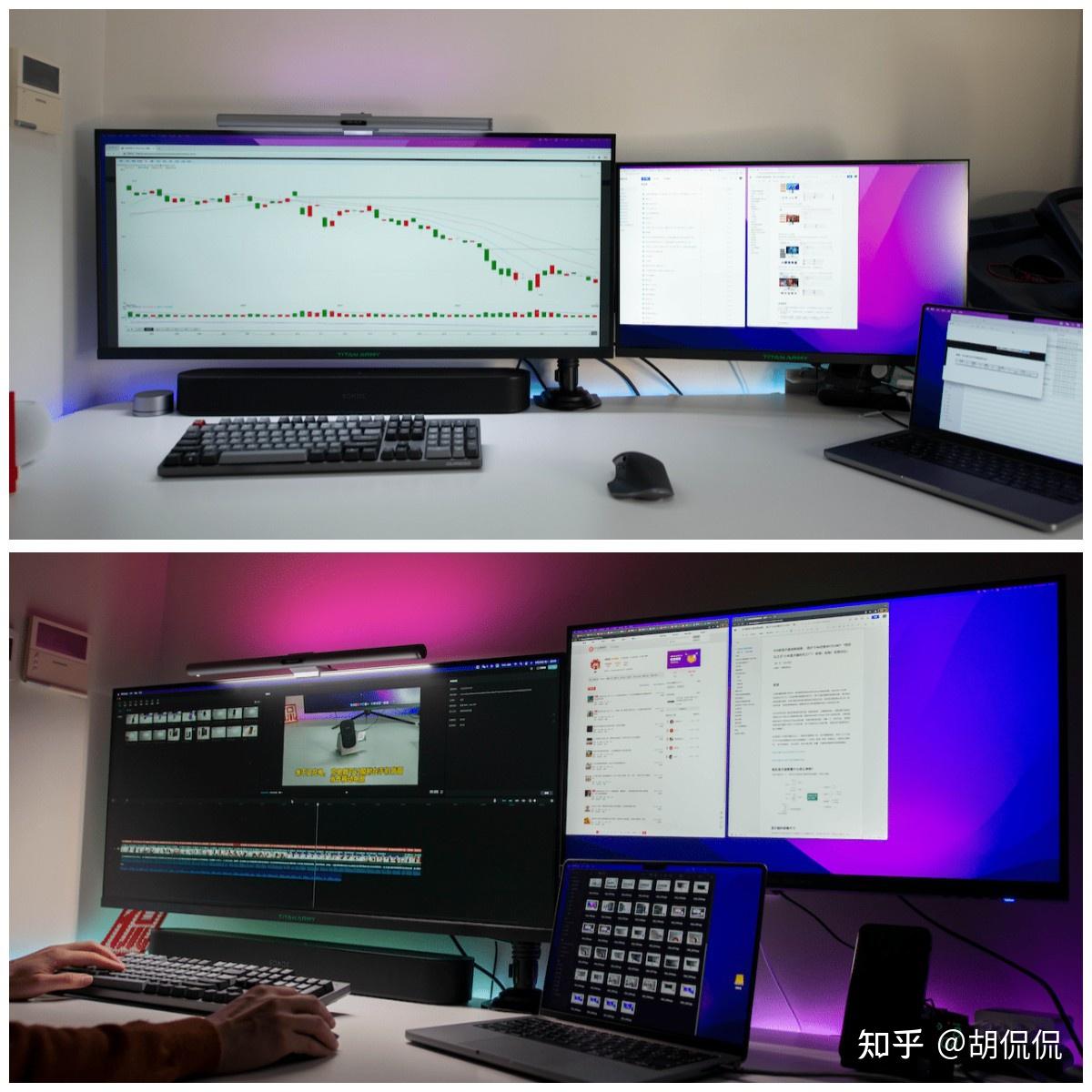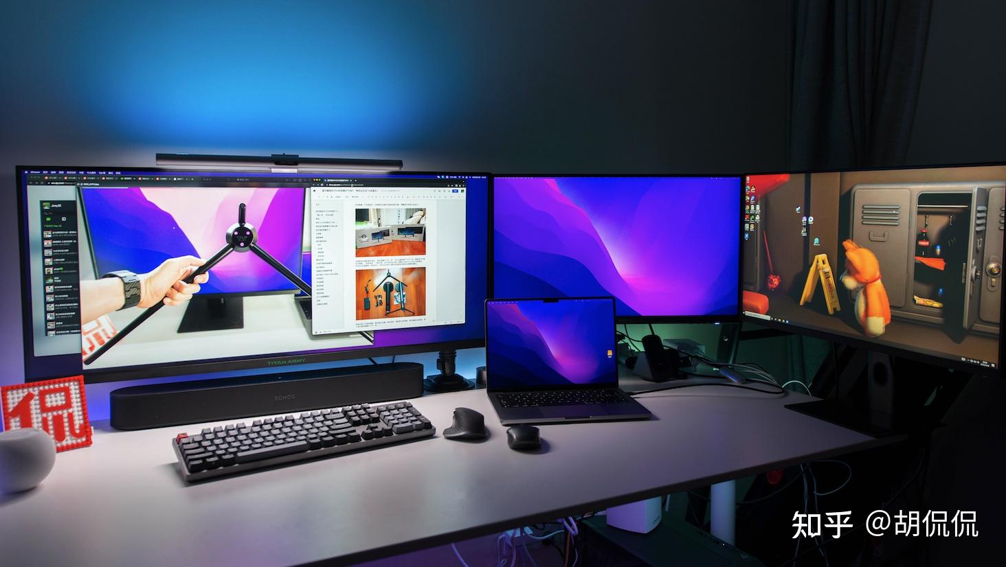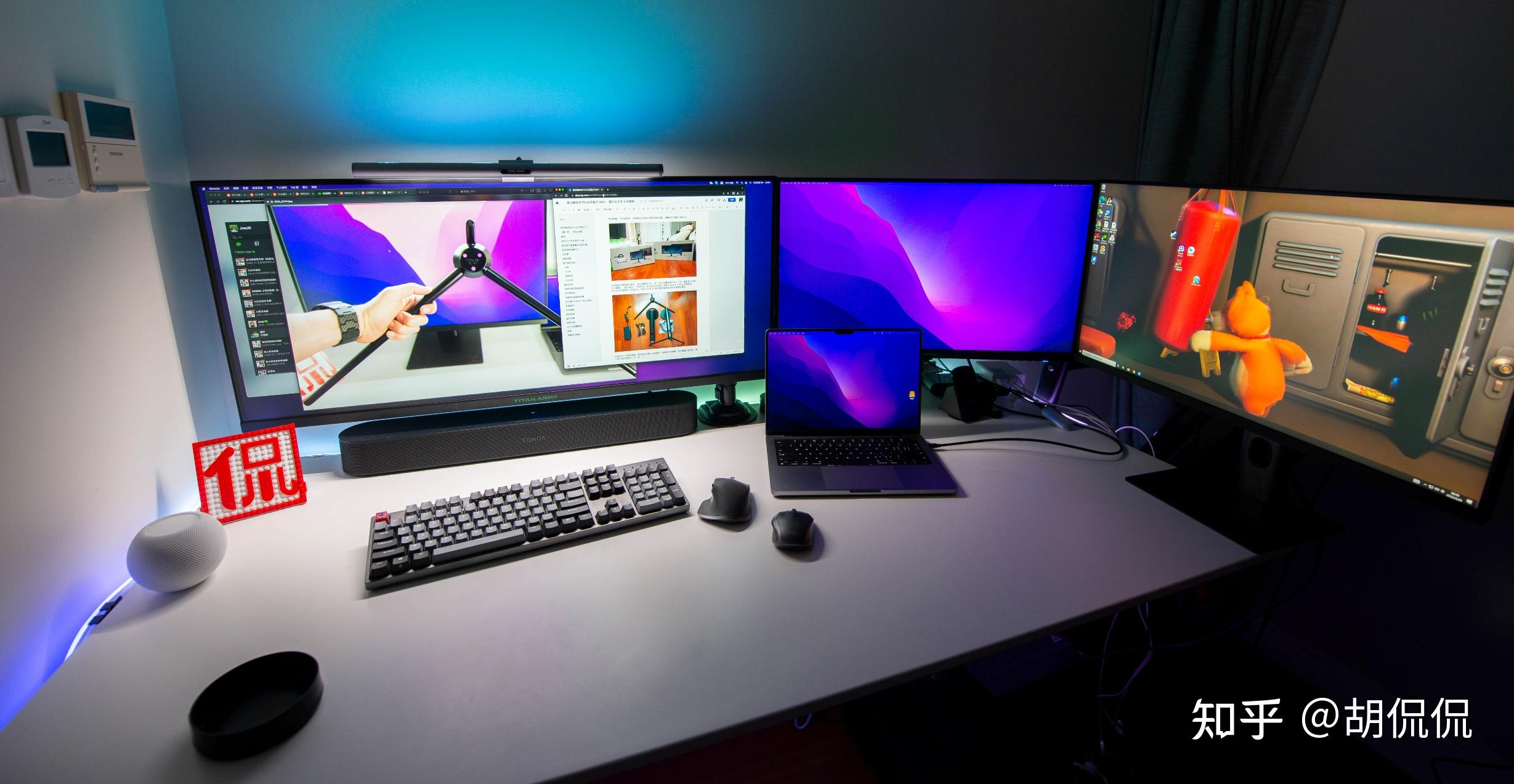 之前我桌面折腾了好屡次,起首是双系统Mac和Windows系统的机器, Mac从M1 mini到MacBook Pro 14, PC的机器也是刚刚晋级不久。 桌子从固定桌面晋级到电动桌, 再从电动桌回到固定桌面。 双显示器收架到显示器和条记本混合收架, 到双显示器和条记本三位一体混合收架, 还有各类桌面走线。桌面的彩光灯带也是刚刚晋级为小米的逃光灯带。 晋级前的样子。