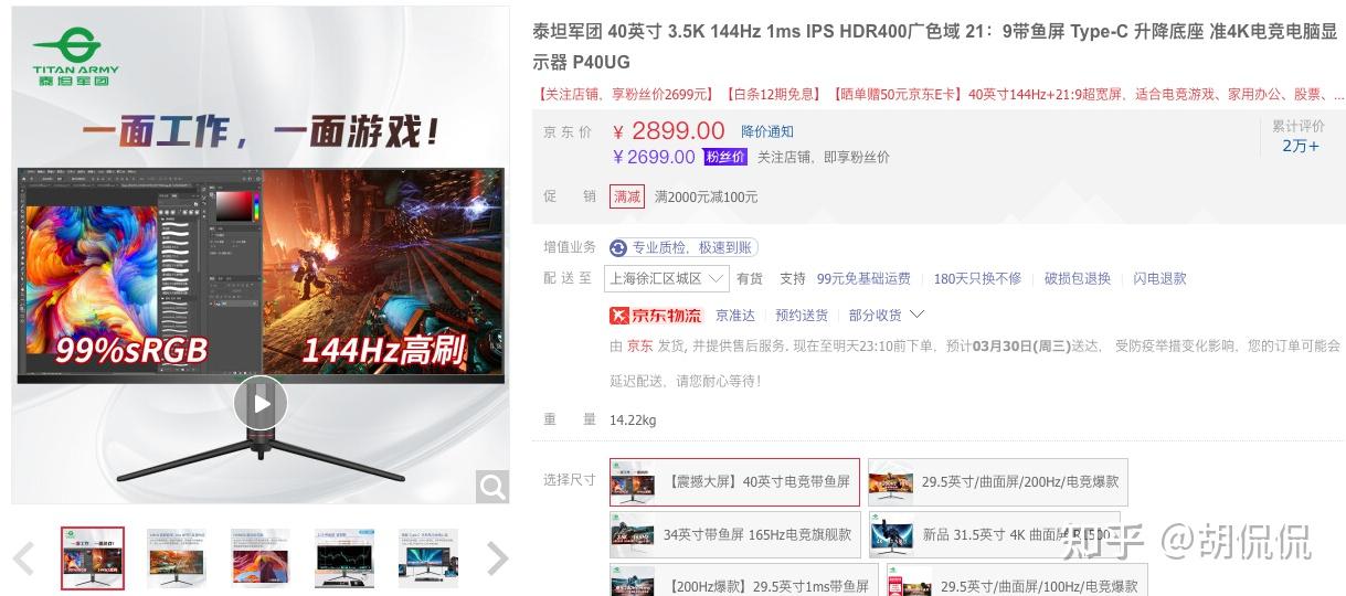 若是你还有工做偏好, 日常办公属性更多一点, 像我一样需要良多事务的处置,有视频编纂需求, 图片修改需求,在歇息的时候两不耽搁, 打游戏,看片子可以契合影院比例一样的视听效果。 我建议选择, 泰坦军团40寸的P40UG电竞显示屏有着3.5K分辩率,144Hz高刷新率,1ms疾速高刷,HDR400加广色域,共同40英寸 IPS震撼大屏幕,我觉得那个产物就是一个办公和游戏的综合利器,消费力可以大幅度进步。