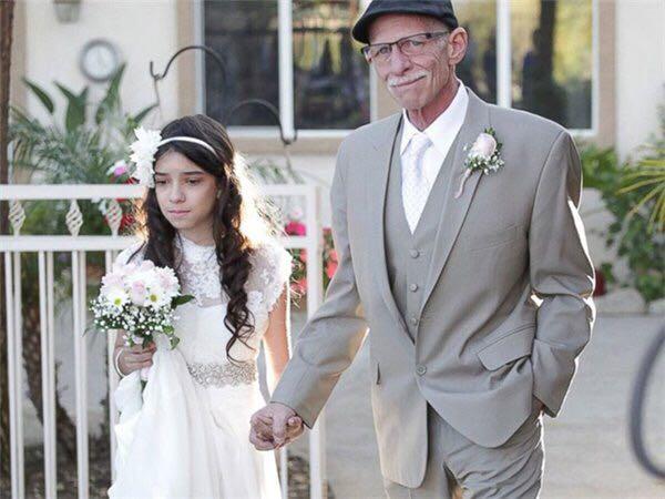 美国加州一名癌症晚期的父亲因为等不到女儿长大出嫁,于2014年3月携着11岁女儿女孩乔西的手走红地毯。那场“婚礼”于3月14日在他们家的后院举行。短短72小时之内,他们收到小区多量好意人的捐助:号衣、钻戒、蛋糕、礼物、还有一名牧师全力相挺。但现场少了最重要的男配角:新郎,唯有一名长日将尽的父亲,牵着女儿完成那场“婚礼”