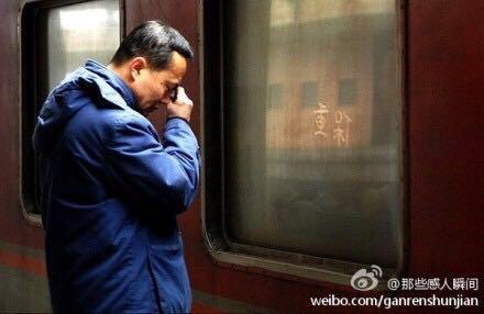 宁波工做的白先生送父母回甘肃,父母在拜别的车站,在车窗上写下“珍重”二字。