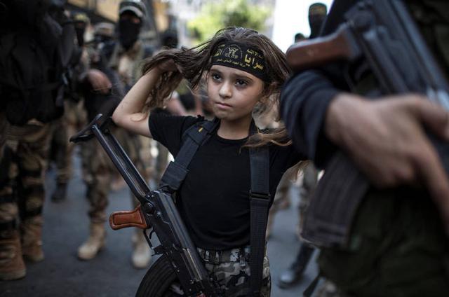 两个在加沙城拿着步枪的巴斯特坦女孩