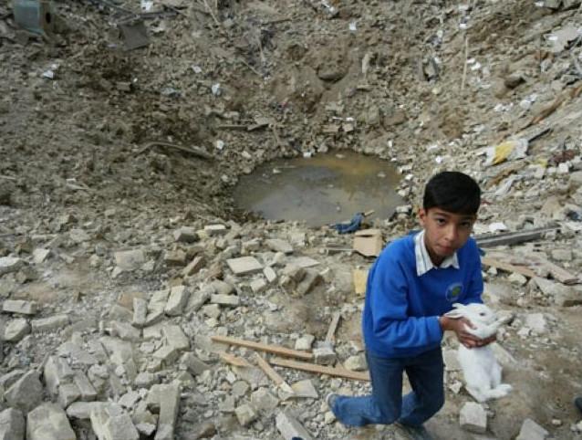 2003, 巴格达,阿富汗,两个小女孩在战争的废墟中救回亲爱的兔子。