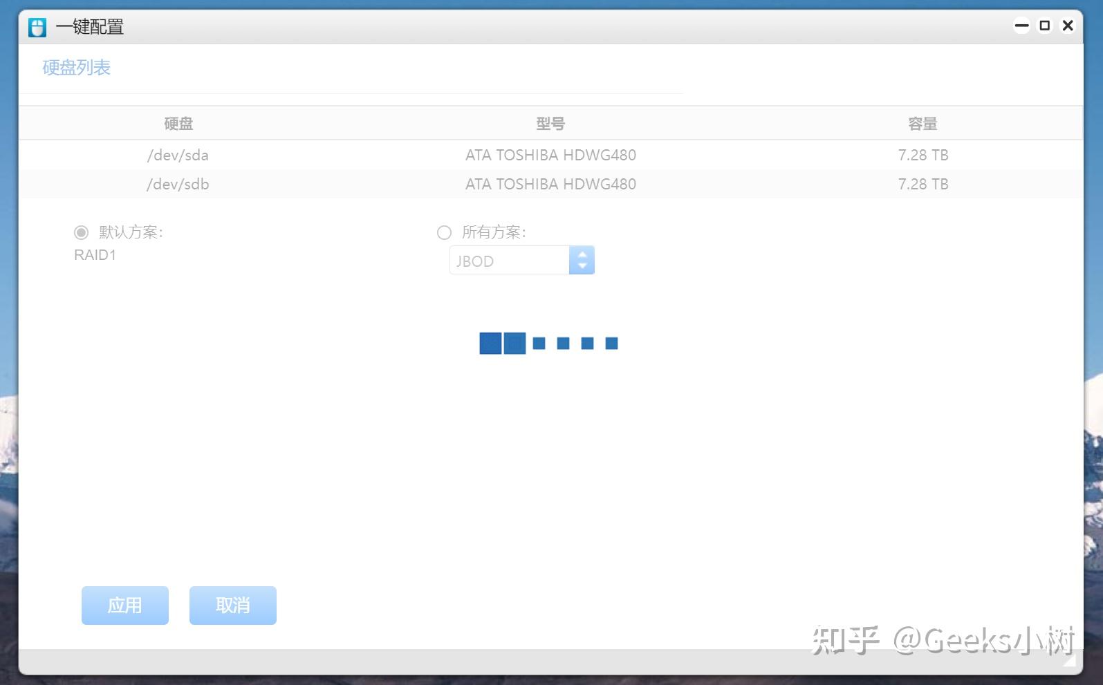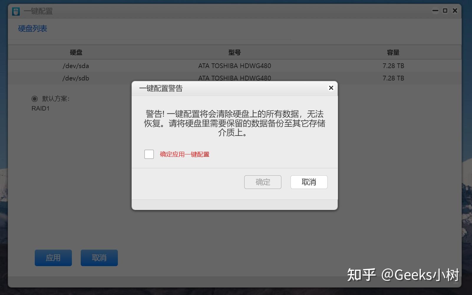 如今各人看到的即是我上文所参加的2块8T的NAS硬盘了,我们只需按照操做,一键装备即可。对了,在那里需要提醒的是,尽量利用新硬盘,或者没有任何材料的硬盘,制止格局化之后,招致统计数据丧失,若是是旧盘,材料需提早存储,切记,切记,切记。