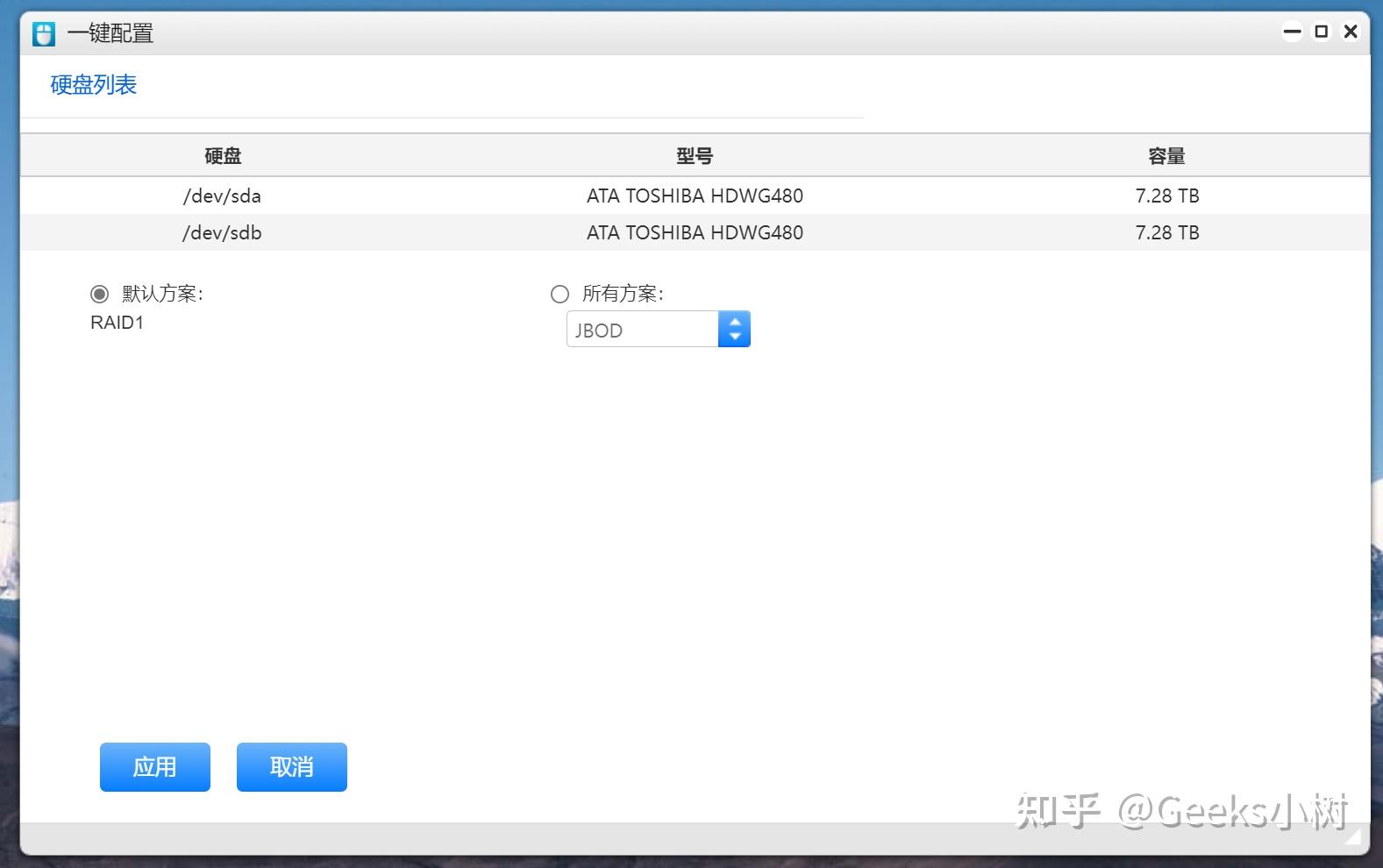 关于Raid0,Raid1,JBOD的区别,就不做多介绍了,因为我拆上的是两块8T硬盘,因而我小我接纳了Raid1计划,由两块硬盘构成14.55TB,那个容量够用了。