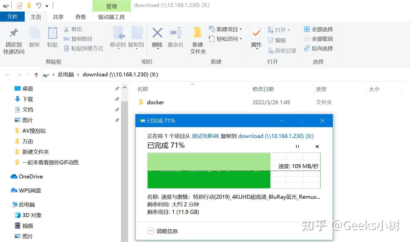 测试中,将一部41.5GB的蓝光片子写入万由HS-401P身上,速度可达109MB/秒。嗯,那个统计数据仅供参考,其实有点摧残浪费蹂躏了HS-401P的2.5GbE互联网USB,因为我家里的路由器是以太网的,因而没有法子阐扬极限,理论上是能够破200MB/秒的,看来为了万由HS-401P得换路由器了,摆设个2.5G的交换机或路由器,就能阐扬更好的速度。