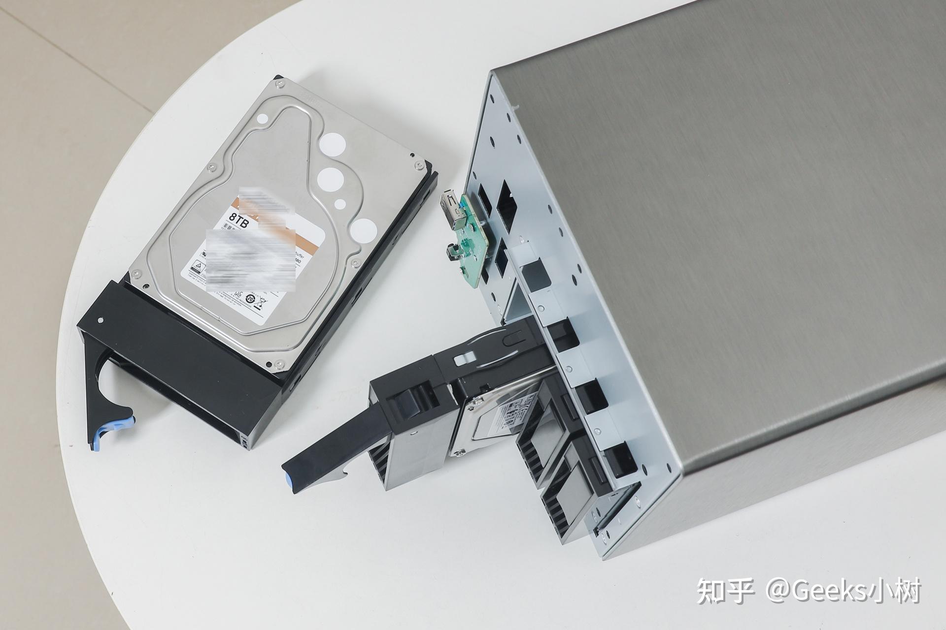 在那里笔者用的是2块8TB的3.5英寸某品牌NAS专属机械硬盘,做为小我统计数据的贮存存储,那16T的容量已经完全能够胜任工做了,无非是手机上的一些视频、照片、办公材料、影音文件等等,为了便利日后增加新硬盘,因而没有组RAID。