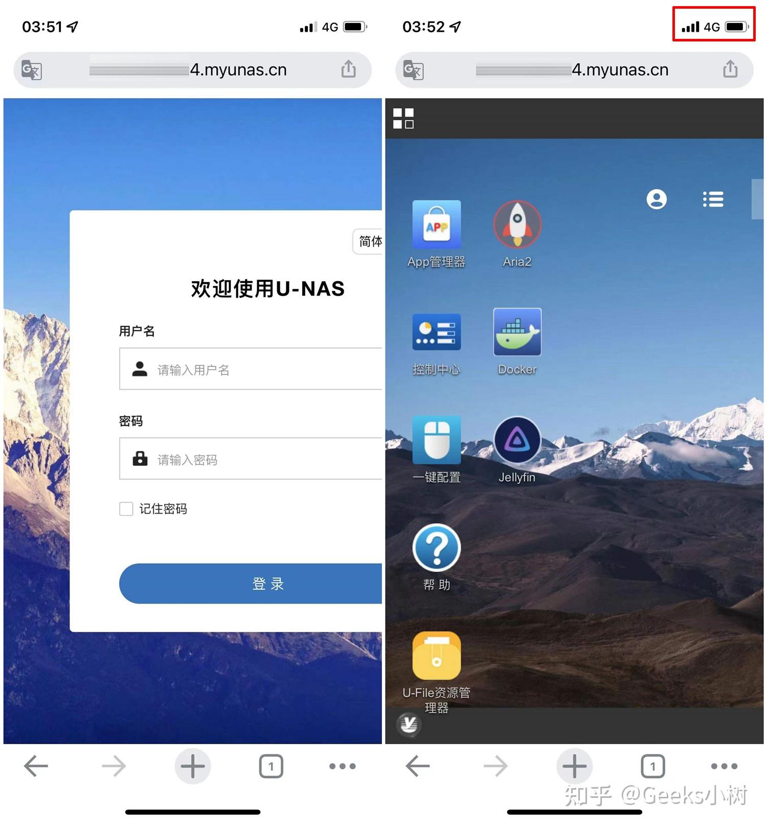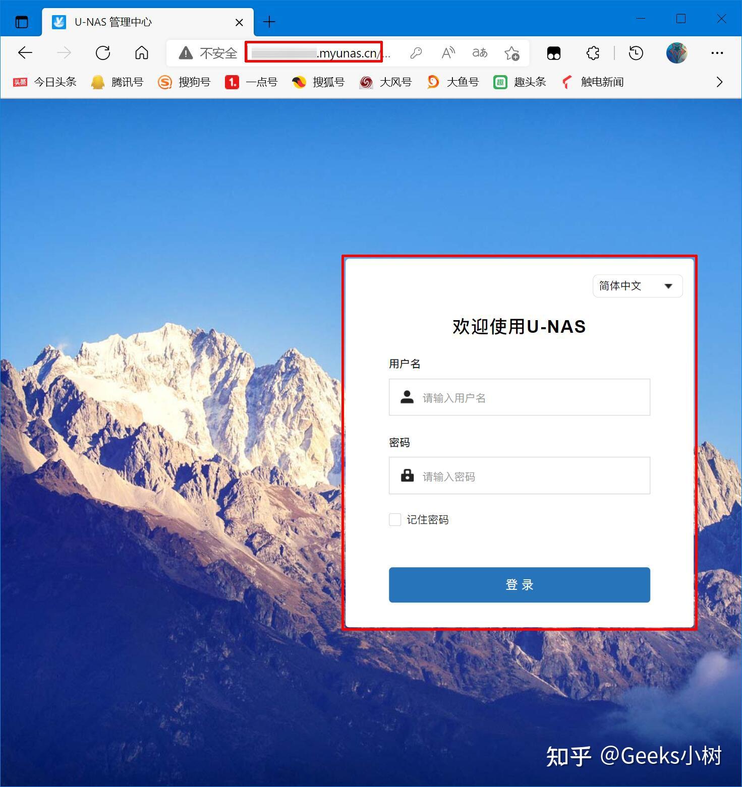 通过简单的设置U-NAS域名,然后就能随时随地的拜候我们家里的万由HS-401P了。