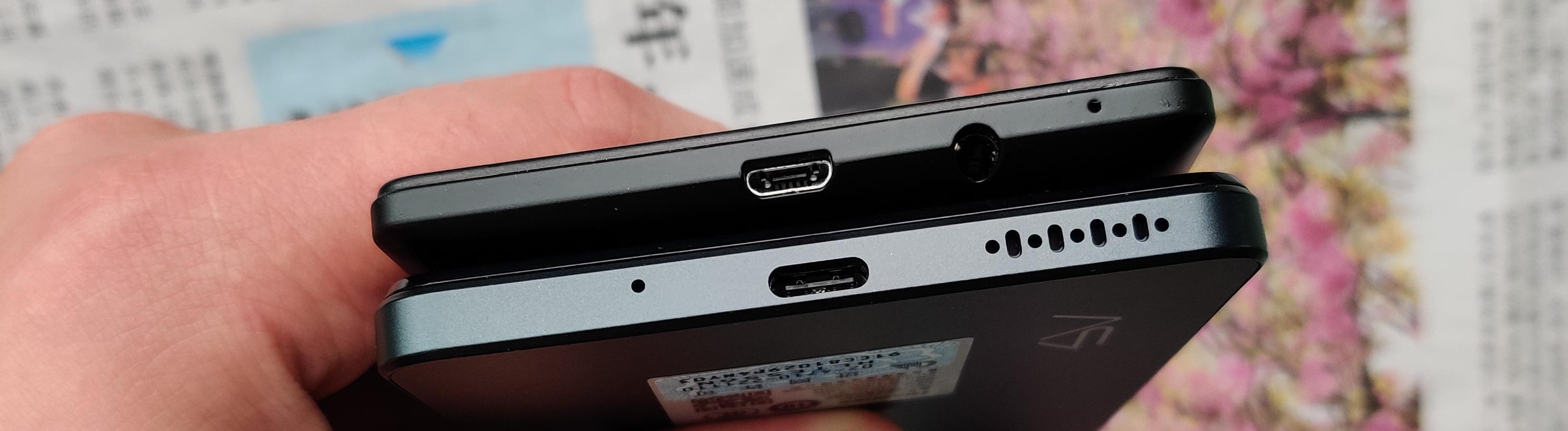 上为长虹A9,下为公函包月底部对照,A9有U**-C插孔,音箱,话筒等,公函包月有Micro-U**插孔,3.5mm音箱孔。