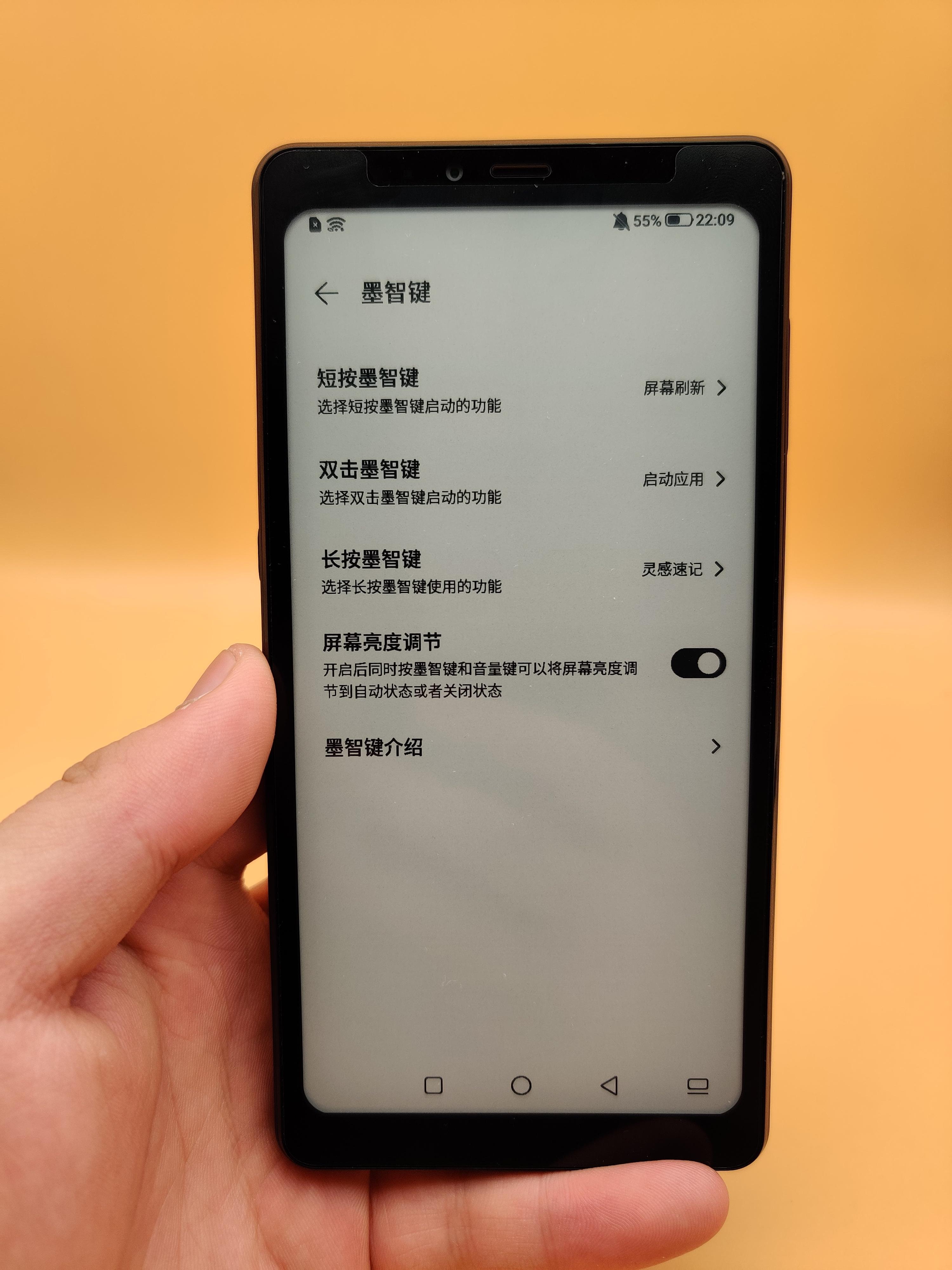 5)墨智键左侧有一颗辨识度极高的墨智键,默认下的墨智键撑持短按全局刷新,双击快速翻开应用,长按调出灵感速记,同时按墨智键+调子键还可开启/封闭萤幕亮度调理,别的,还撑持自定义按钮设置,总体来说,很便利适用。