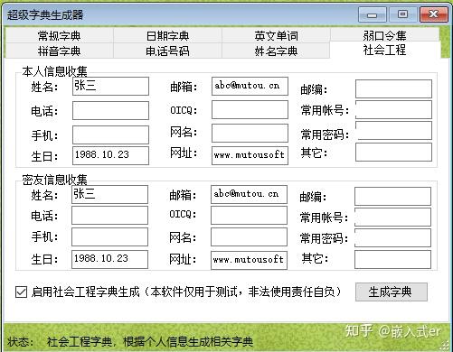 社会工程及组合词典解密在词典生成器中还有更多组合体例,如有心之人搜集你的小我信息,还可定向组合更多词典。