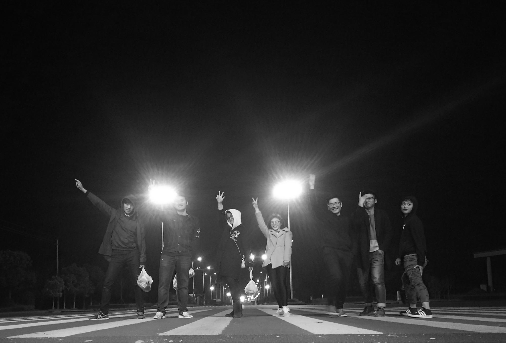看看地上那一齐的影子 一个个都盯着学妹们军事体能训练完毕后组织他们聚会吃烤肉,发现店里有唱歌的处所,高歌了一首那就如许吧,不测的唱的不错。跳舞大赛完毕,带着一帮干事会的学弟学妹从老校区一路压马路压了回来,路过阳光湖那边的阴沉森的斜路,还试图编故事吓唬他们。聚会回来重新亚压马路回来,路过文庙和他们一路傻傻的摆pose拍相片。