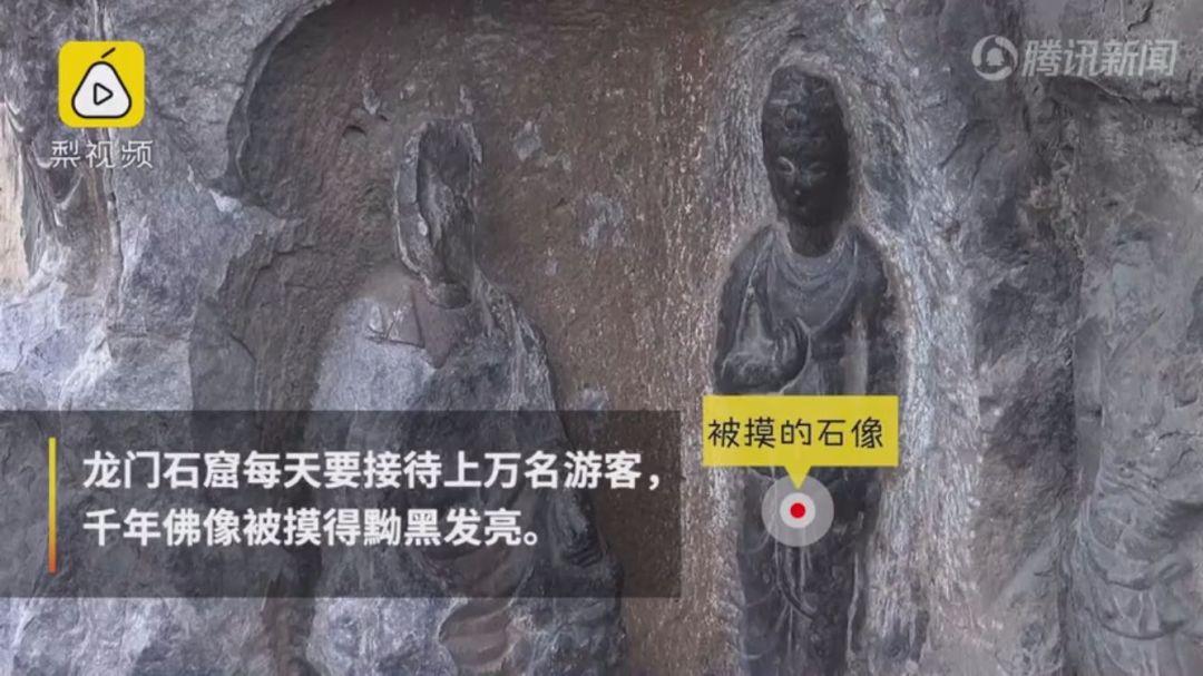千年佛像被游人们摸得黝黑,