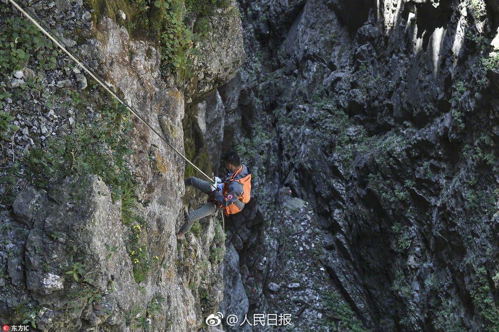 他们经常吊着绳索下到悬崖峭壁下,