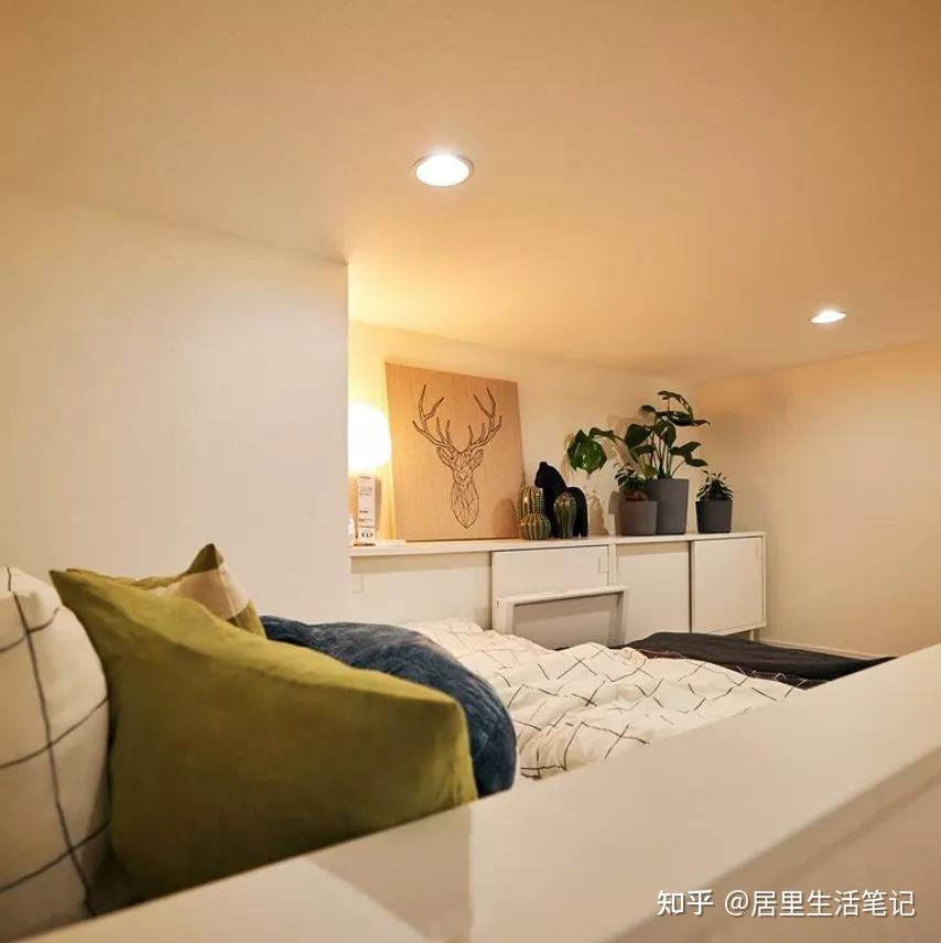 在一层的卫生间留足高度的根底上,摒弃了传统床架,为卧室开拓更多内部空间。