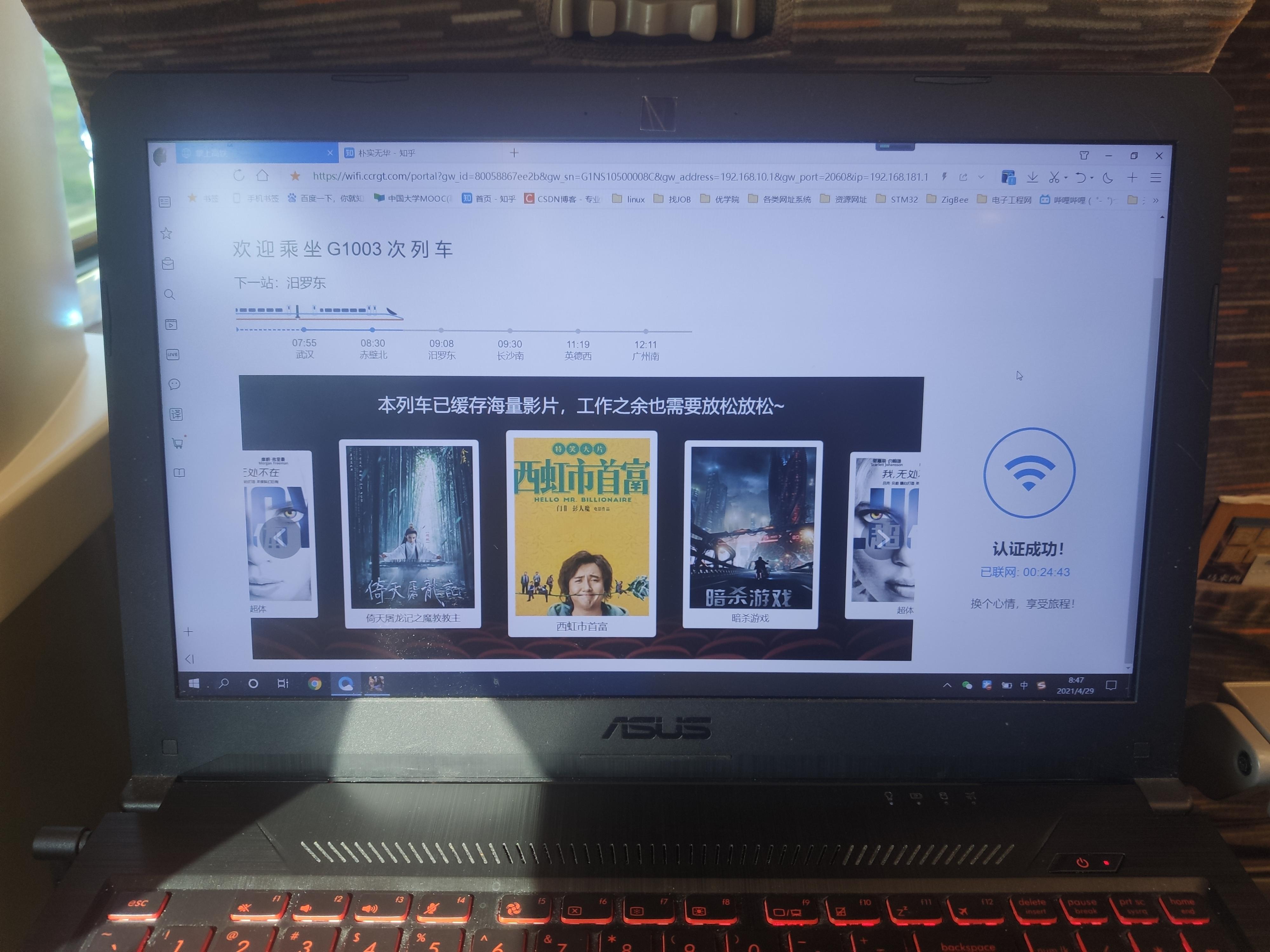 2021/4/29 8:30 第四更 第一次用电脑连高铁的wifi,体验感实棒!写毕设论文前花点时间写知乎。