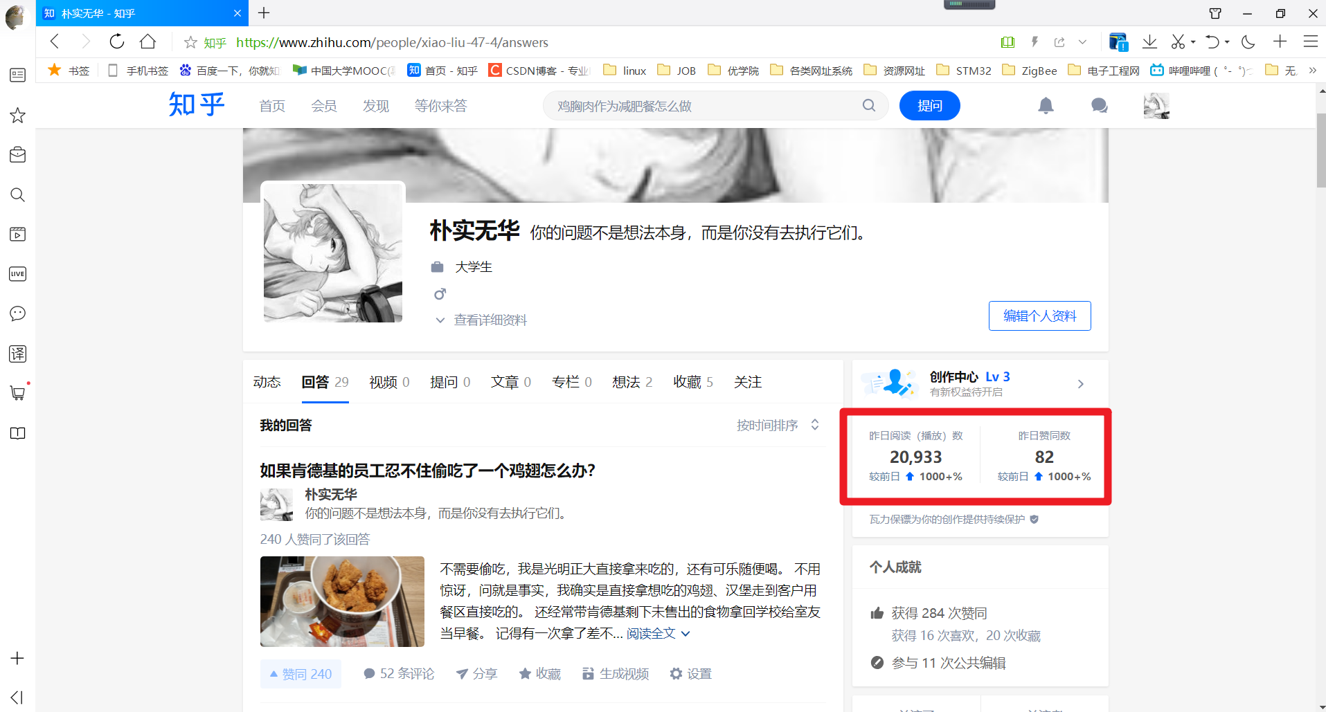 没想到随意答的一个问题,阅读量能上W,点赞能上百,实的是第一次,高兴的像个吃了甜筒的孩子,临表涕零,不知所言。