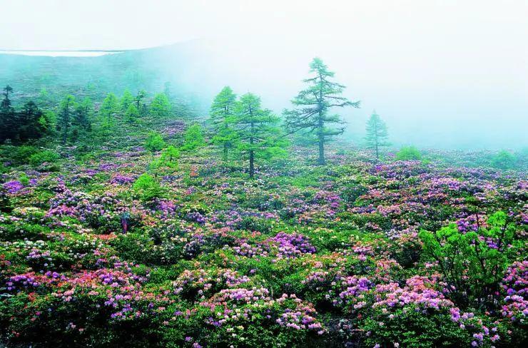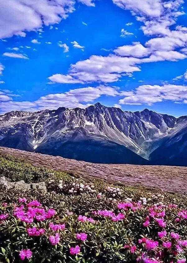 在初夏冰雪消融时,高山杜鹃漫山遍野灿然绽放,给荒凉的山野披上绮丽的外套。
