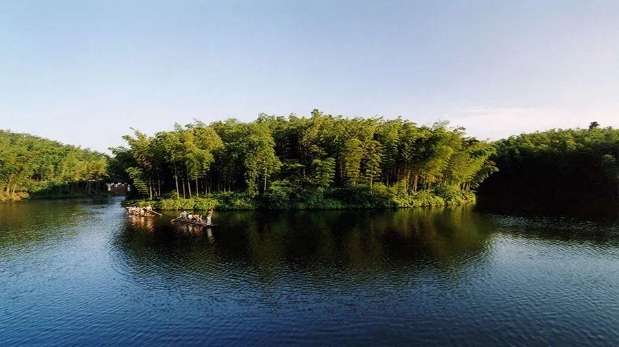 临水而建的竹亭、竹寨,在翠竹的掩映下,灿艳多彩。绿的山,翠的竹,清的湖,又构成了一帕帕斑斓的水彩图景。通往仙女湖的青石板路,道路延伸至远方,两旁高竹林立,给人幽深安好的觉得。