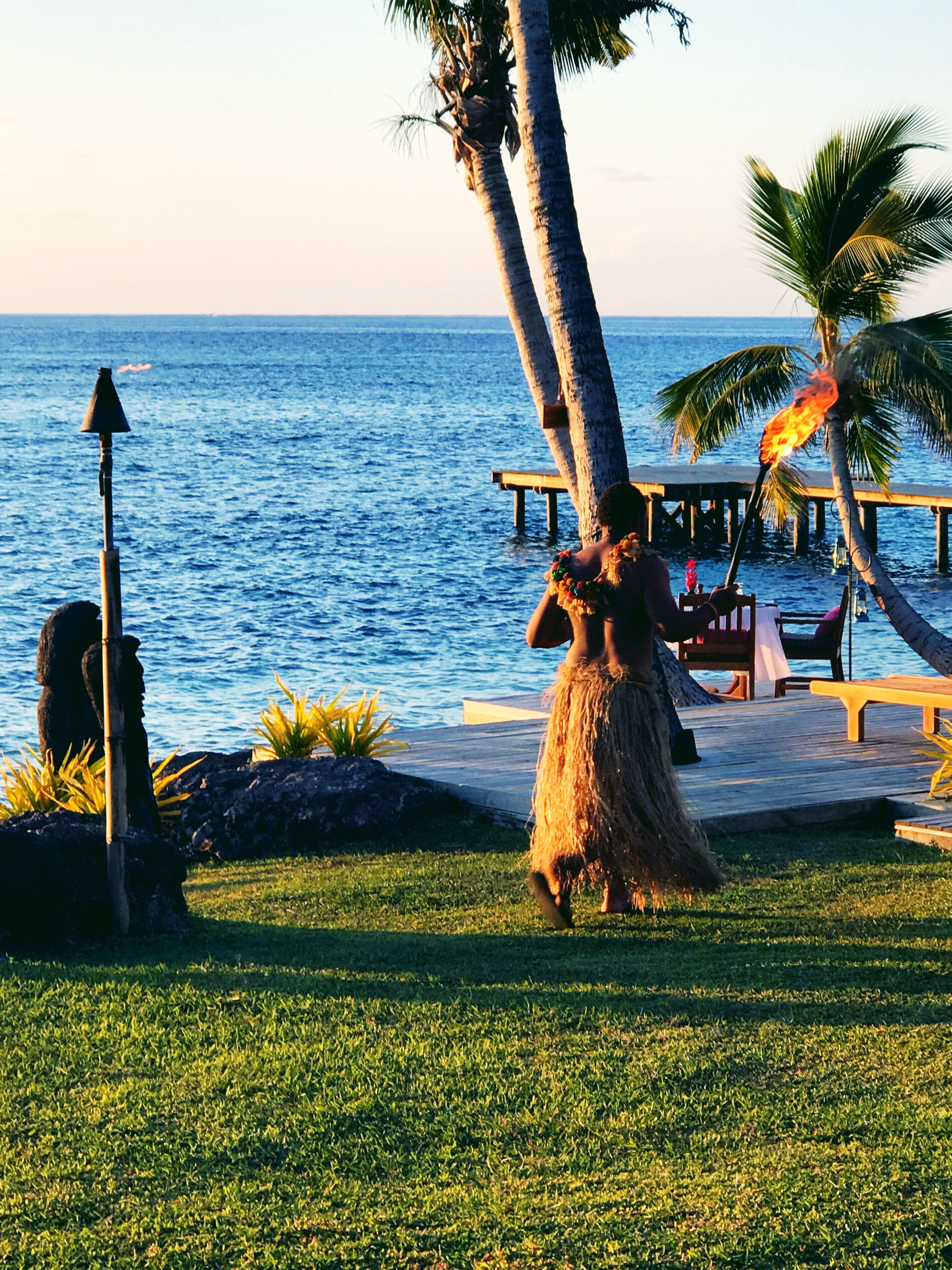 拍在斐济的海边土著。