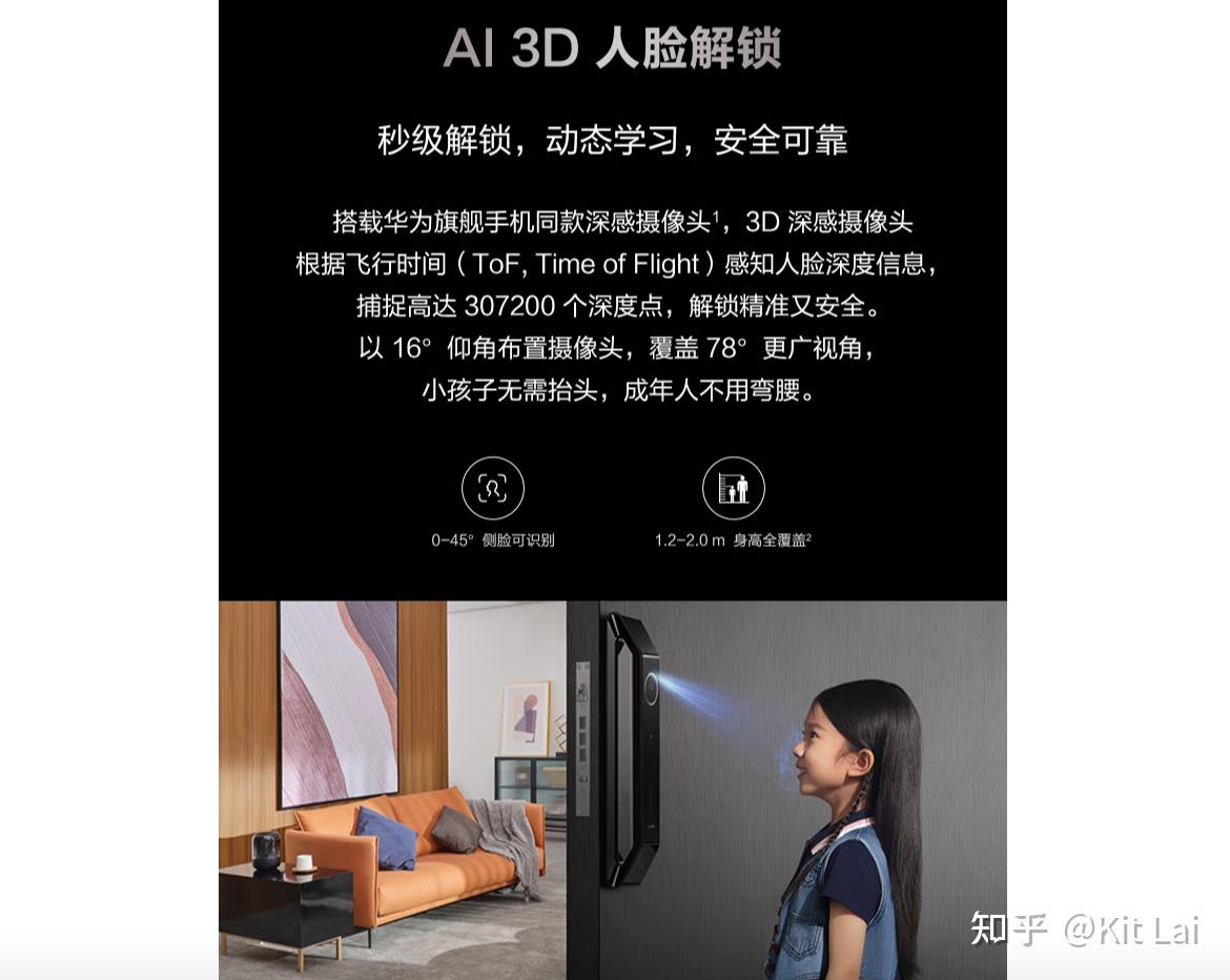 超gz端3D人脸识别智能锁!选用商汤3D人脸识别计划,有效避免平面图像破解偷车,识别范畴为1.2m-2m,小孩大人一样好用,搭配自研发全主动主动门体,日常在靠近门前通过雷达就能识别用户并主动偷车,利用非常便利。除3D人脸识别外,还带有积体电路人脸、公钥、NFC、门禁卡、应急锁匙等合共8种偷车形式。EAL4+平安可靠晶片加持,平安可靠性十足。自带海思WiFi晶片,可洛佐韦收集,更能通过宏碁HiLink联动宏碁智能家居产物。