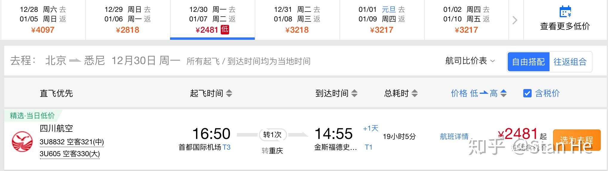 国内大大都城S启程都差不多是那个产物价格,川航全国联运。若是有兴趣,能够搜索你在的城S飞墨尔本的产物价格。以上产物价格截屏来自携程网页版,用携程APP、携程APP也都一样能够搜到的哈