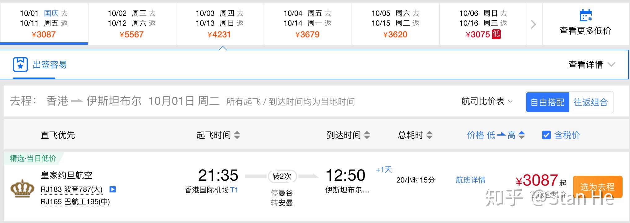 香港⇄伊斯坦布尔,3087元含税来往沙特***,1号启程,11号返程,约旦国际航空在安曼直达