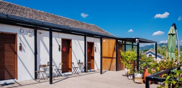 农园由一座农家生态小院革新而成,几间酒店客房却极尽精巧温情,每户特有的私家泉水泡池。