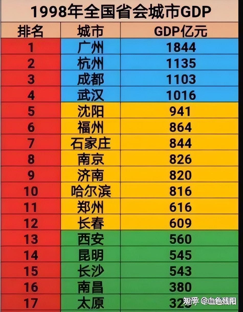 最猛的是1998年,太原比南京高高了17亿(1997年也比南京高),