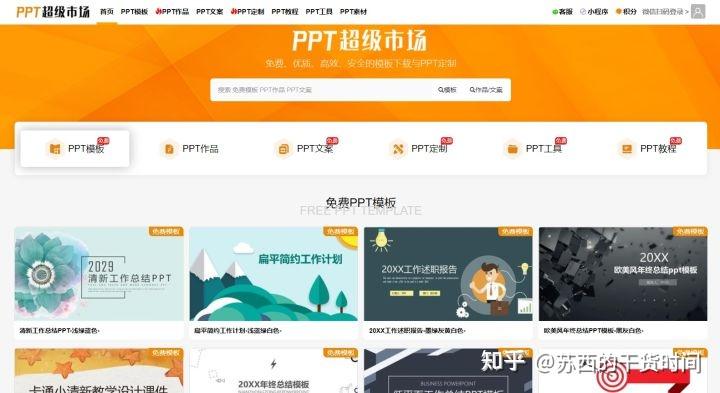 1、PPT超等S场PPT超等S场是一个永久完全免费的PPT模板阅读网站,而且PPT模板大大都非常精巧,量量都非常可靠,根本上日常需要的都能找得到,网站网页也是简约气概的设想,不会让人看起来觉得杂乱无章