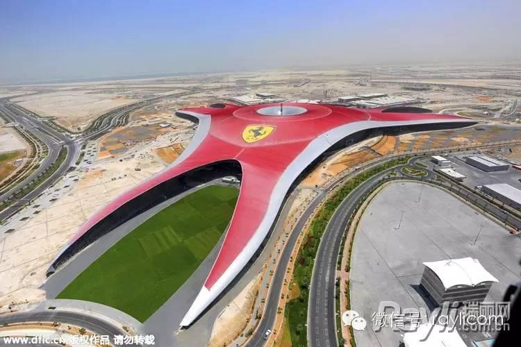 阿布扎比,法拉利主轴公园鸟瞰图。那是全球首个法拉利主轴公园,也是全球更大的室内主轴公园。