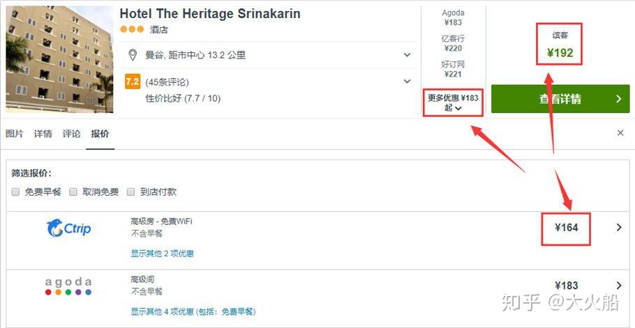 和比驿网一样,有独立的我国版中文网站,速度较为快。中文网站页面固然不太美妙,但是胜在简单,一目了然。目前比比驿网好的一点是,http://Hotels.com 和携程网(现实是携程网英文版 Trip.com)都有。我简单的较为了一下,优栈网全面笼盖的中文网站仿佛比英文版 Trivago 少,所以建议各人接纳 Trivago 的中文版(trivago.com.tw),繁体字一般都能看得懂,能较为更多的中文网站产物价格。例如那家饭馆:香港嘉里饭馆。 优栈网只较为了 7 个中文网站,而 Trivago 较为了 9 个中文网站。▼