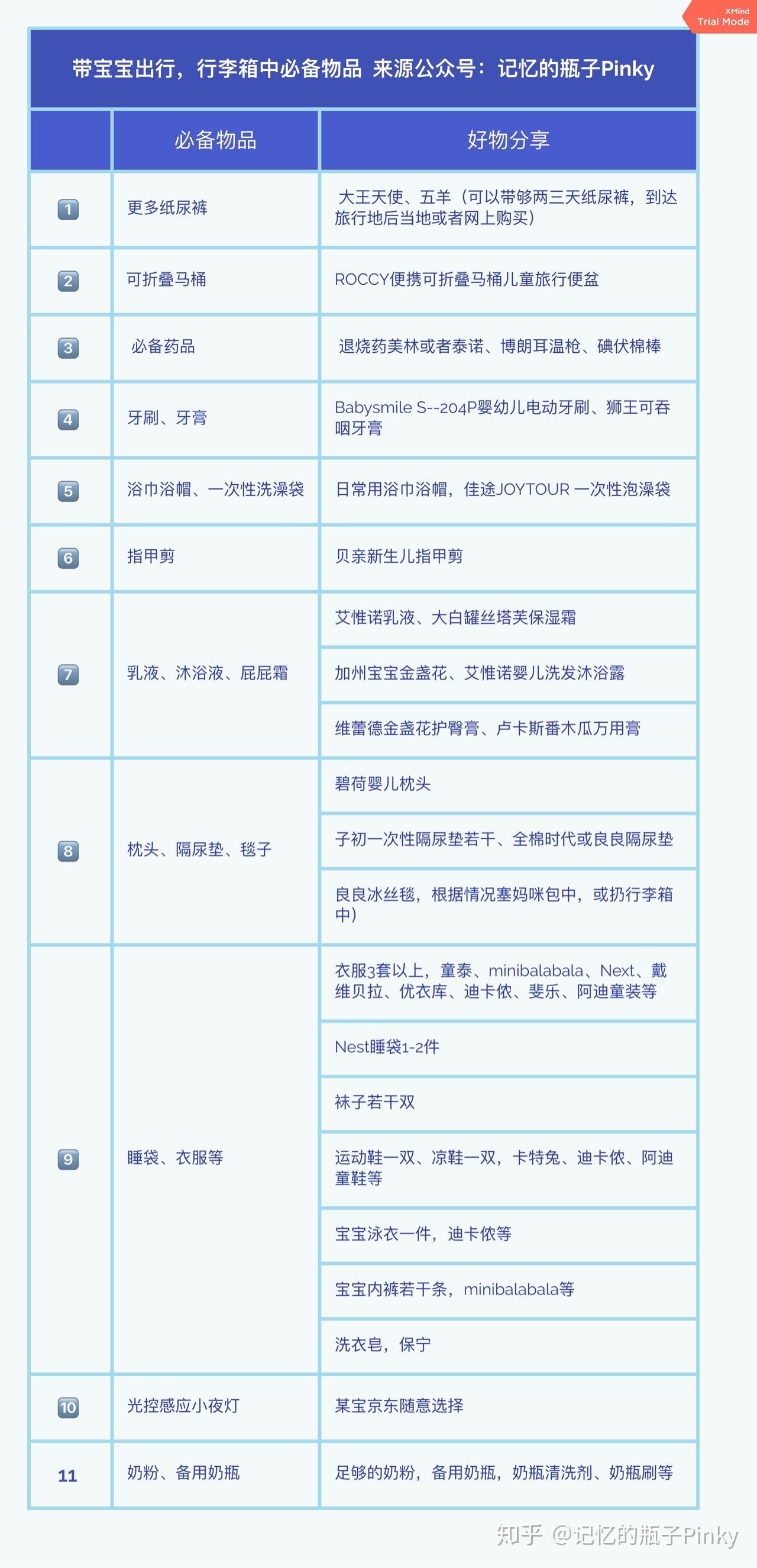 8.带宝宝出行,行李箱中照顾什么?