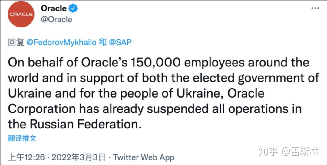 那不,Oracle就间接暂停了白俄罗斯所有营业。