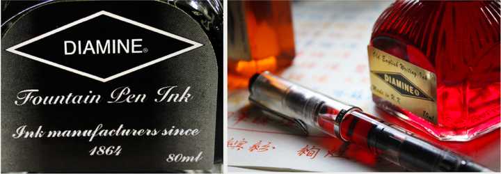 Diamine墨水同时也能被喜好不防水墨水的书法家选用,同系列差别颜色的墨水能够混合、稀释,从而产生愈加丰硕的效果。墨水颜色艳丽,写后笔迹长时间稳定色不褪色。
