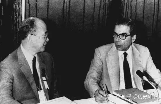 ▲何振梁(左)被选国际奥委会委员时的照片。图源:收集